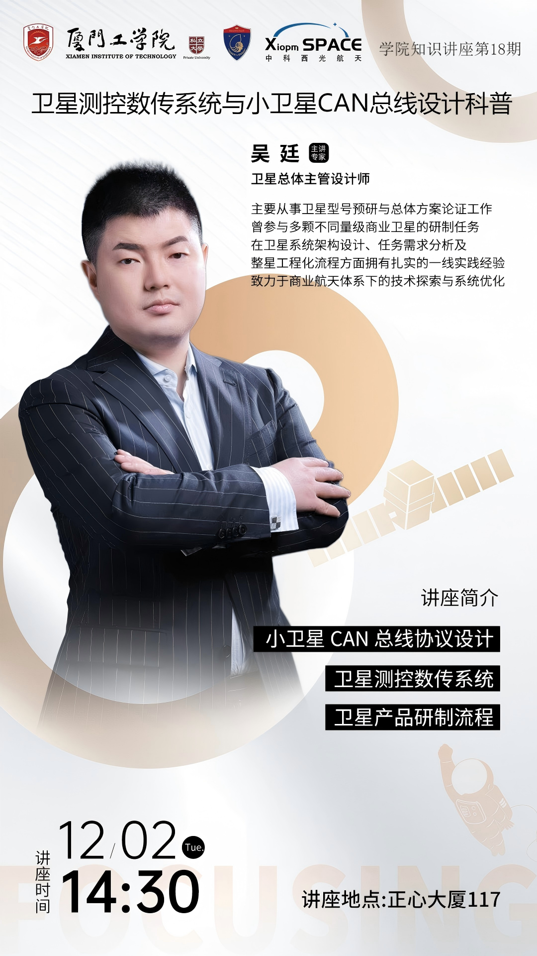 主题:卫星测控数传系统与小卫星CAN总线设计科普