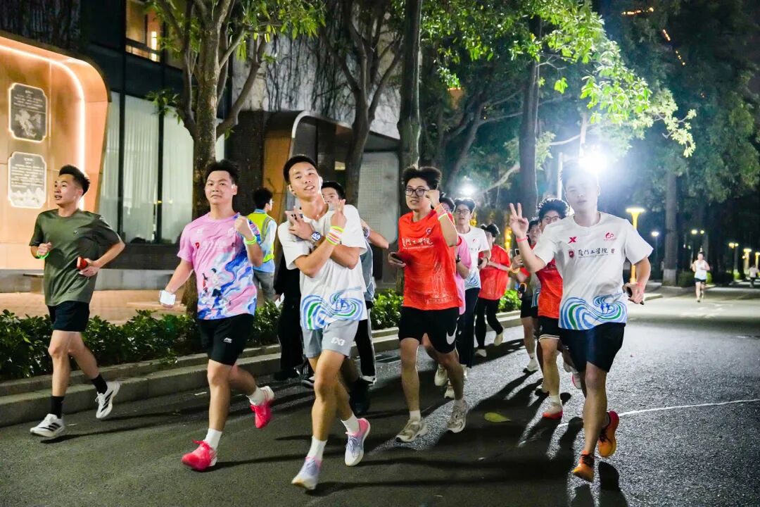 简短而热烈的热身活动后,随着起跑指令发出,队伍宛若一条发光的星河渐渐漫入校园的夜景之中。脚步声、呼吸声与闪耀的光影交织,青春的活力在每一次摆臂、每一次迈步中迸发。