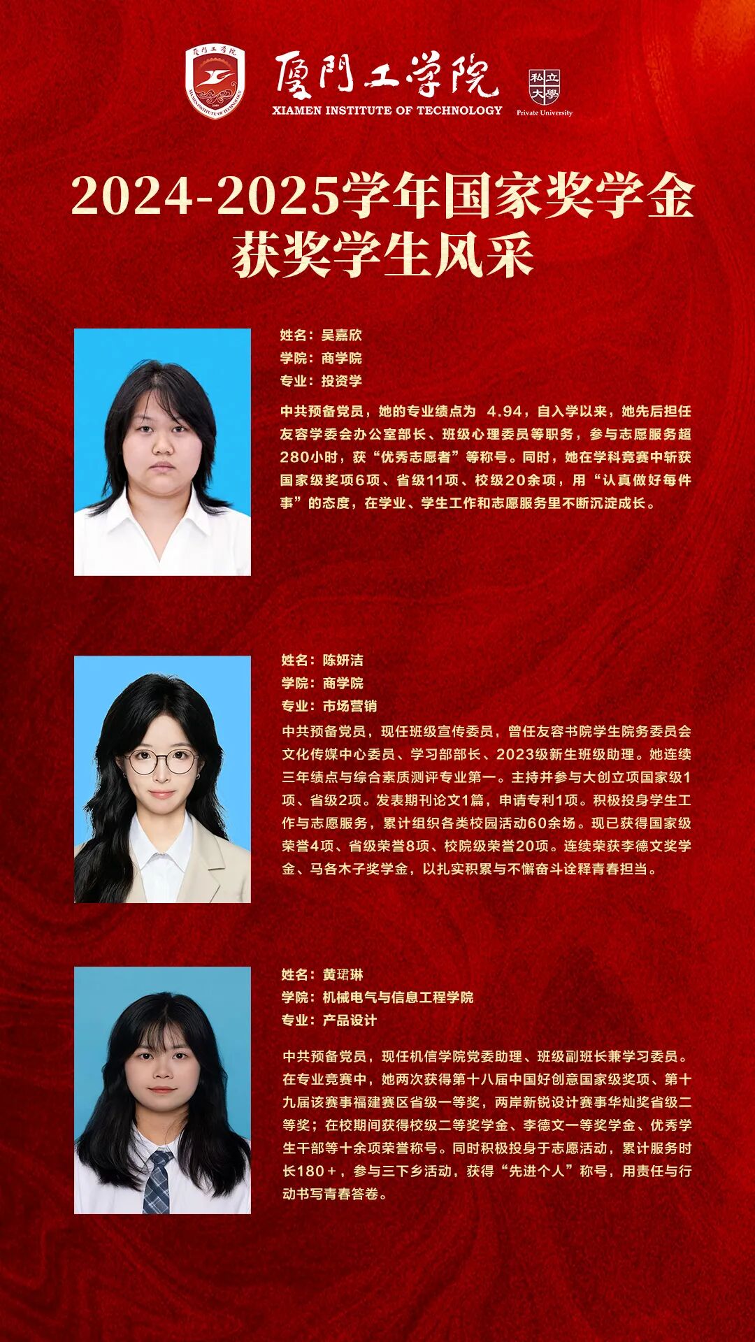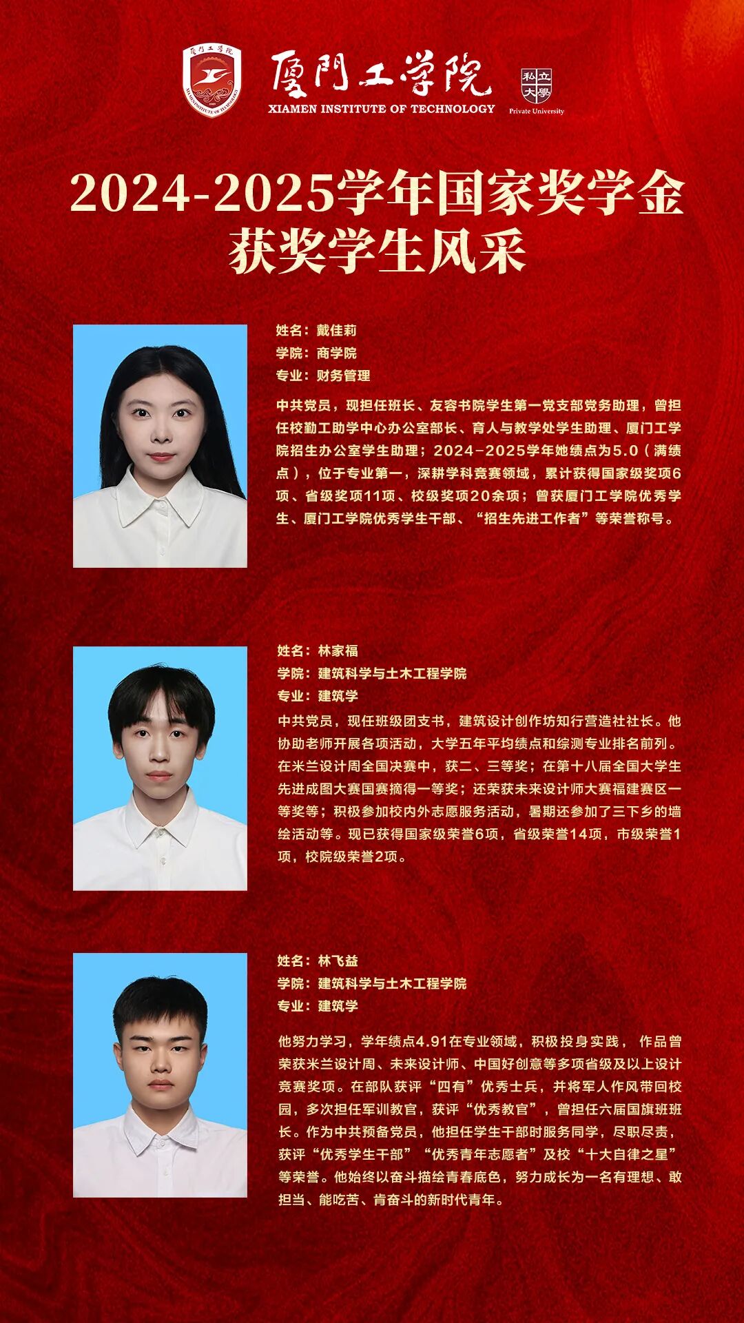 近日,教育部网站公布《教育部关于2024—2025学年度本专科生国家奖学金获奖学生名单的公告》。我校23名学子喜获国家奖学金。让我们共同走近他们,一睹他们的风采!