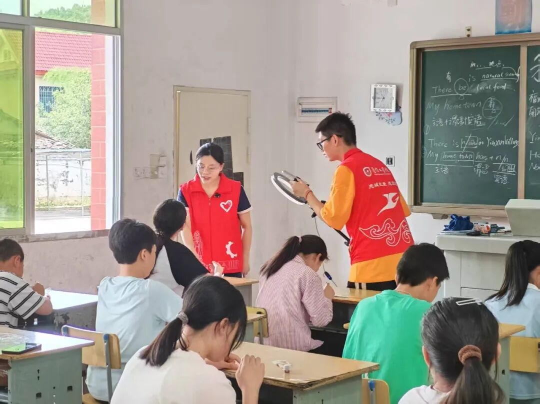 2025年6月,作为“语翼·乡行”实践队队长,我第二次带着团队的小伙伴去到了我的家乡,利用专业优势,给孩子们上英语课,拍摄家乡的记录视频、双语宣传视频,同时开设网店,售卖家乡特产。意外收获是在实践过程中,一个小朋友因为我们的课程对英语重获兴趣,最后帮助他圆了高中梦,我们不知道他背后付出的努力,但从没想到会受到如此大的肯定!我的心也被深深触动,教育在此刻有了意义。