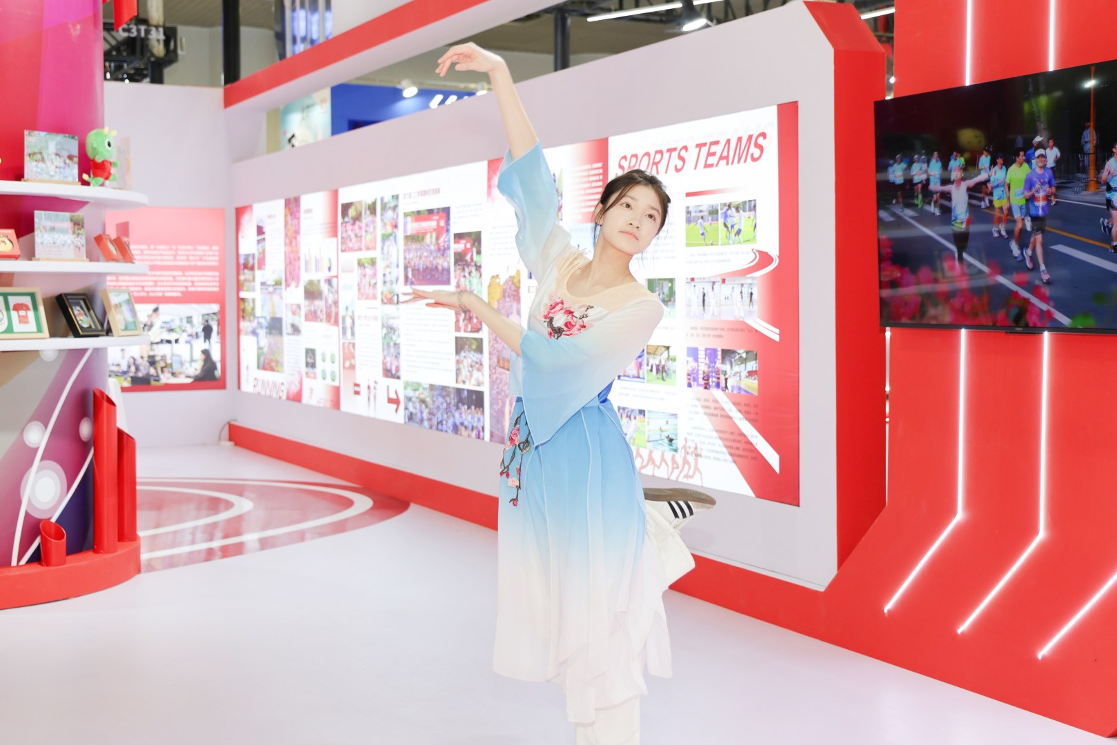 展区精心布置校园马拉松体育文化展示墙,各类赛事特色周边以及影音资料与宣传手册,多元化、多角度展现了学校历届赛事中的精彩瞬间和校园体育文化的丰富内涵与独特风采,以及我校在推动高端赛事与大众运动深度融合方面的大学体育实践成果。