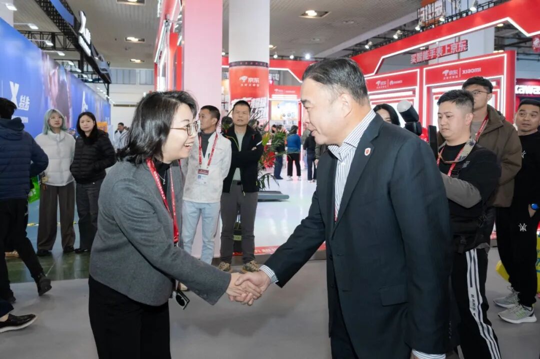 中国马拉松冠军跑者何杰、徐冰洁、黄菲也来到我校展位参观交流,并对学校浓厚的体育氛围与办赛成果给予了充分肯定。