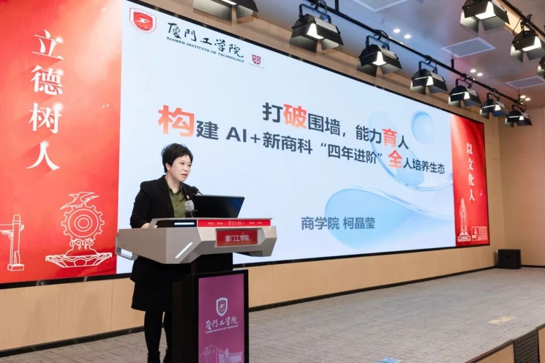 下午的分享从“锚定数智创新,聚力铸魂育人一一思政学院人才培养提质攻坚行动计划”开始,思政学院马新妍院长锚定学校“三型一体”人才培养定位,以“一个核心目标、三大攻坚任务、四项保障”措施为抓手,聚焦打造“AI+思政+实践”三位一体特色育人体系,推动传统思政模式迭代升级;体育学院余家红院长聚焦体育“强人教育”理念与实践路径,系统阐述了以体育素养赋能学生终身发展的新蓝图与行动规划;融新学院黄蓓院长解读了学院人才培养方案,明确五大培养目标、九大核心能力,展现了融新学院的时代之问、融新之道、实践之果与未来之思。