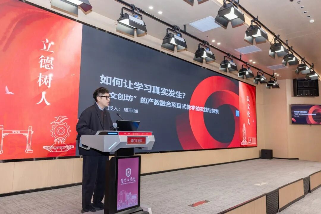 生态集群产业学院汤伟明执行院长从生态集群产业学院的建设背景,发展历程,运营模式,展望未来等方面向大家介绍了生态集群产业学院是学校深化产教融合,培养博雅型,复合型,创新型人才的关键引擎,同时也是教师开展项目式教学的实验田;工业智造产业学院陈珍姗副院长分享基于项目式教学的产业学院人才培养实践路径,阐释产业学院人才培养实施策略,详解企业真实问题向课堂教学项目的转化机制;人工智能产业学院林燕芬副院长以人工智能产业学院项目牵引为核心纽带,汇报学院产教融合推进成效,着力打造 “课程-场景-项目” 三链协同的育人新模式;教师进修学院应志远执行院长聚焦“让学习真实发生”,构建产教融合项目式教学模式,通过现代师徒制、真实产业项目,设计渐进式培养路径,实现学生作品从“作业”到“作品”的转化。