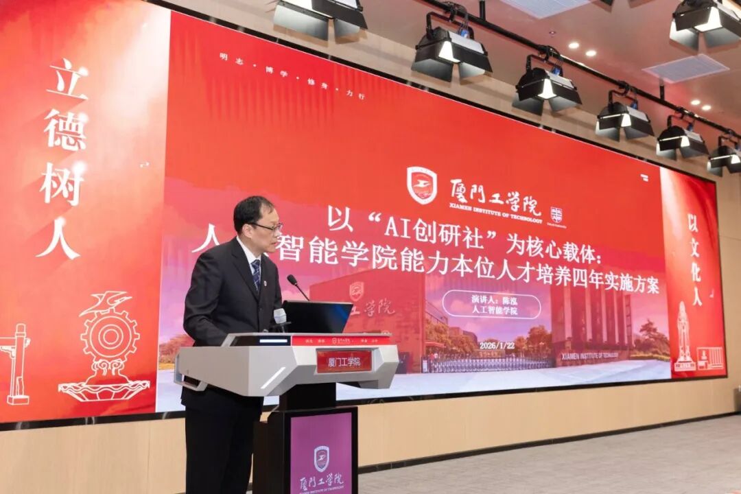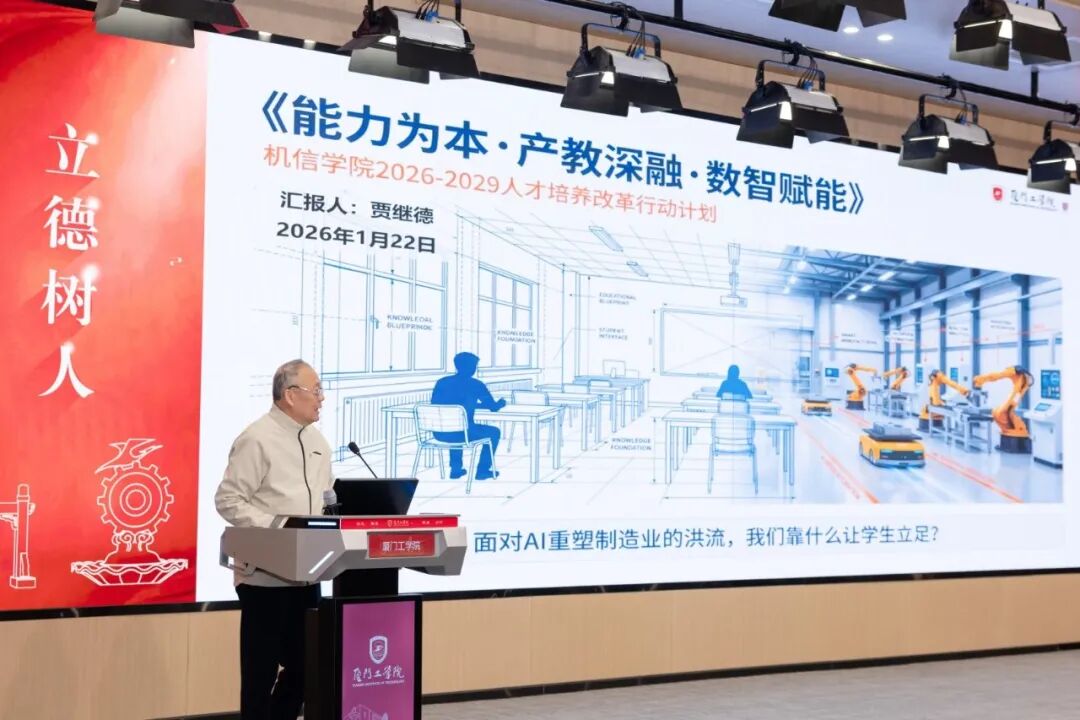 机械电气与信息工程学院贾继德院长汇报了学院的人才培养改革方案:依托工业智造产业学院,确立“三核/三层/AI”实施路径,并以项目制为载体,将“课程列表”重构为“能力生态”,有效落实智能制造复合型人才培养;人工智能学院陈泓院长围绕以“AI创研社”为核心载体的能力本位人才培养四年实施方案开展汇报。他表示,传统培养模式困境下,改革是主动求变的需要,人才培养四年实施方案通过组织重构、流程再造、评价革命、资源整合四大支柱构建培养体系,分三步走实施,并计划以Web3理念构建去中心化个人数据体系,实现师生双向匹配与协同发展,打造数据驱动的智能化育人体系;建筑科学与土木工程学院李晓瑾院长紧扣国家规划与行业导向,分享以学科融合与智能技术驱动的建筑人才培养路径,通过项目式教学等载体适配行业发展需求;博雅教育与艺术传媒学院吴琼院长提出未来教育是大规模因材施教的生态系统,通过“造梦”激发内驱力、“筑境”搭建平台,培养有情怀、善创新的未来人才;商学院柯晶莹院长以“打破围墙、能力为本”为核心,秉持“Human@AI”前瞻理念,构建“四年进阶”全人培养生态。通过商技融合、产教协同,分阶锻造学生核心竞争力,致力于培育数字经济时代应用型创新型的商科人才;外国语学院邱能生院长阐述外国语学院人才培养创新路径,以“AI赋能、能力为本”为核心,构建三大战略支柱,实施两大重点工程,打造智能时代外语教育新范式。