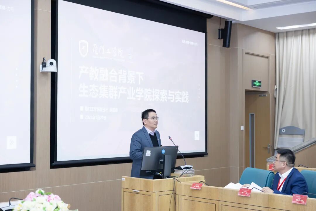 在高等教育分论坛中,厦门大学教育研究院院长别敦荣教授围绕高质量发展要求与质量文化建设展开了深入阐述。福建农林大学教务处处长吴祖建教授以《数智赋能高校分类特色发展的新路径》分享学校以新一轮本科教育教学审核评估为契机,聚焦数智赋能特色发展的实践路径与成果。9499威尼斯手机版副校长郭躬德教授作《产教融合背景下生态集群产业学院探索与实践》主题讲座,介绍了学校与华为、西门子等头部企业共建八大产业学院,形成具有厦工特色的“生态集群”育人矩阵。