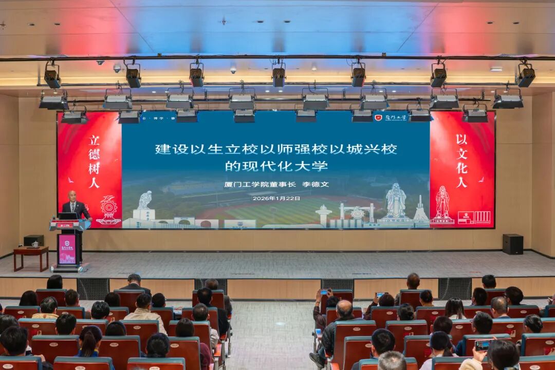 在“大学即学生:以生为本 以生立校”部分,他从理念引领、课程革新、空间营造、AI赋能四大维度,阐释“大学即学生”的内涵,强调大学是学生人格塑造、真理探索的“人生练兵场”。在“大学即教师:以师为魂 以师强校”部分,他提出“教师教育能力(10项)”要求,系统探讨教师思想与能力体系建设路径,着力构建“使命引领、能力支撑、制度保障、文化滋养”的完善教师体系,为学校高质量发展筑牢根基。在“大学即城市:以城为根 以城兴校”部分,学校创新性提出“大学即城市”理念,打破传统办学壁垒,将学校定位为“精致型城市”的核心单元。通过建设现代“精致型”城市式校园,推动城校同频、开放办学,彰显办学特色,实现校地共生共荣。