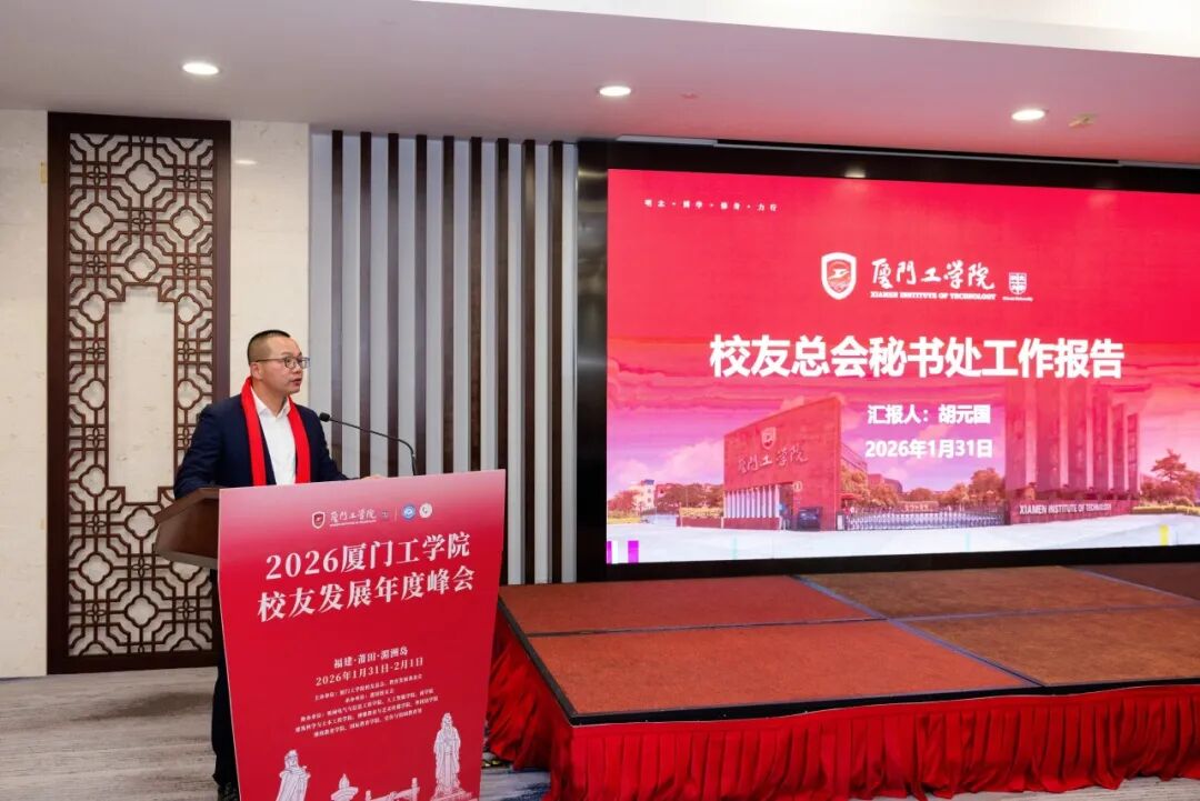 报告中,李雄虎副董事长、执行校长详细介绍了母校在本科教育教学审核评估、八大产业学院建设、硕士学位授予单位培育项目、人工智能赋能教育等方面的显著进展,并深入阐述了“大学即学生、大学即教师、大学即城市”的“三位一体”办学理念。面向未来,他表示学校将推动校友工作从情感联结向发展共同体升级:通过“执行校长校友专线”“创天下”论坛等载体深化常态化沟通与终身学习服务;全力打造“校友经济”生态圈;高质量建设“厦工校友产业联盟”,并以每年新建10-15个地方校友会的节奏,持续织密覆盖广泛、结构健全的校友网络。