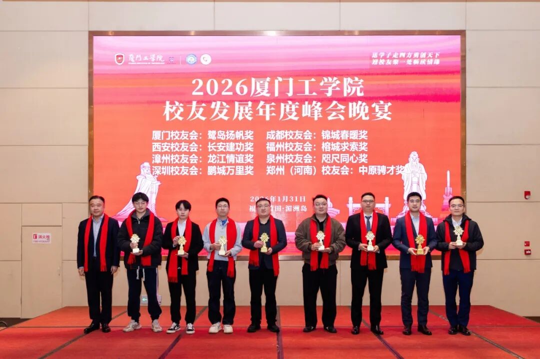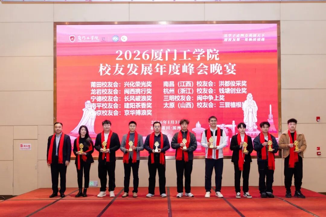 在地方校友会奖项颁发环节,厦门校友会获“鹭岛扬帆奖”、成都校友会获“锦城春暖奖”、西安校友会获“长安建功奖”、福州校友会获“榕城求索奖”、漳州校友会获“龙江情谊奖”、泉州校友会获“咫尺同心奖”、深圳校友会获“鹏城万里奖”、郑州(河南)校友会获“中原骋才奖”、莆田校友会获“兴化荣光奖”、南昌(江西)校友会获“洪都俊采奖”、龙岩校友会获“闽西携行奖”、杭州(浙江)校友会获“钱塘创业奖”、宁德校友会获“长风破浪奖”、三明校友会获“闽中争上奖”、南平校友会获“建阳茶香奖”、太原(山西)校友会获“三晋植根奖”、北京校友会获“京华搏浪奖”。李雄虎副董事长、执行校长为以上获奖校友会颁奖并合影留念。
