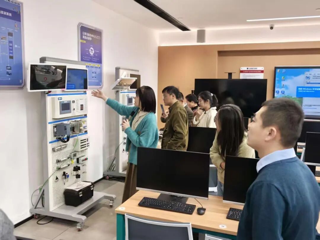 2月6日下午,在研修课程结束后,参训教师们走进学院实践基地,实地参观智能制造产线、5G工业互联网平台及新质工业创作坊等实践基地,详细了解了产业学院产教融合课程的建设机制及学生创新项目孵化流程。参训老师们认真聆听介绍、驻足观摩,就课程内容与产业实践融合、项目驱动教学实施、学生能力评价体系构建等关键问题展开热烈研讨,对产教协同育人模式有了更直观、深刻的认知与体悟。